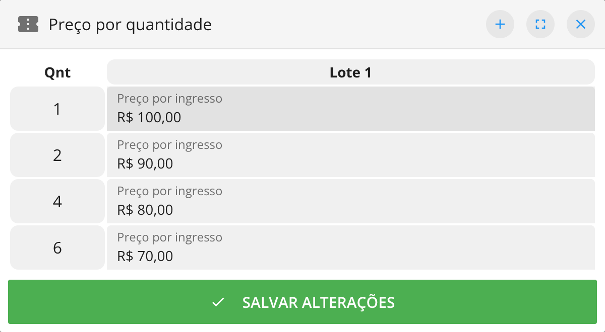Configure regras automáticas onde o valor muda conforme o número de ingressos que o cliente compra.