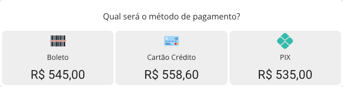 💳 Ofereça pagamentos por Pix, boleto e cartão, dando ao cliente liberdade de escolha
